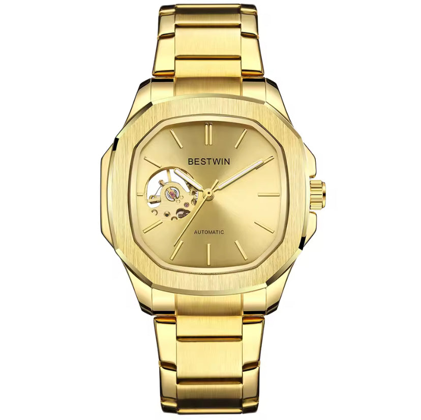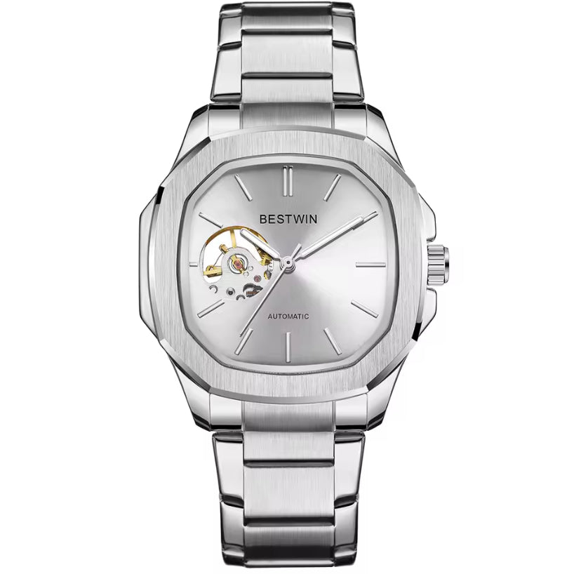 La montre automatique Bestwin est la montre d'affaires parfaite pour les amateurs de modèles précis et raffinés. Avec son cadran à index simple et sa découpe à gauche pour une vue sur les rouages du mouvement, elle allie style luxueux et qualité professionnelle. Son boitier et son bracelets sont conçus en acier inoxydable robuste, offrant une étanchéité jusqu'à 30m. Parfaite pour un usage au quotidien ou pour les affaires.